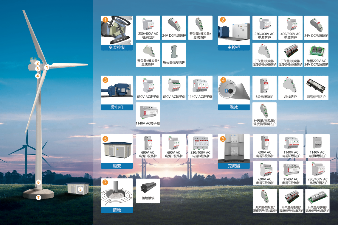 根据风电防雷的需要,中光提出了综合防雷解决方案: