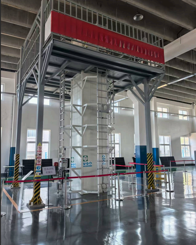 实训台风电机组登⾼逃⽣训练实训装置专⻔为风电企业运维⼈员打造的⼀款训练平台。为了满⾜学员登⾼和逃⽣的真实训练,实训台采⽤的塔筒设计、爬梯等登⾼装置完全与真实风电机组选⽤⼀致。该实训装置适⽤于陆上和海上风电运维培训使⽤。